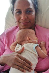 - Huid op huid vermindert pijn, bijv. van de hielprik.