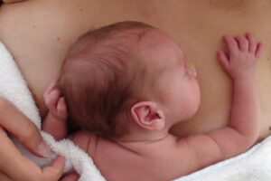 Een moeder die borstvoeding geeft heeft iets speciaals: zij kan de temperatuur van haar baby beide kanten op reguleren. Is de baby te warm, dan daalt haar eigen temperatuur tot de baby weer comfortabel is. Het fijnste recept voor háár is: minimaal twee uur. Voldoende tijd voor de baby om rustig uit zichzelf wakker te worden, te snufffelen aan de borst, een voeding te nemen en daarna weer lekker in slaap te vallen.